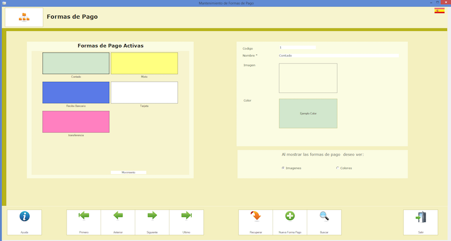 Creación, modificación, consulta y eliminación de secciones, proveedores, productos, clientes, formas de pago, empleados, etc.