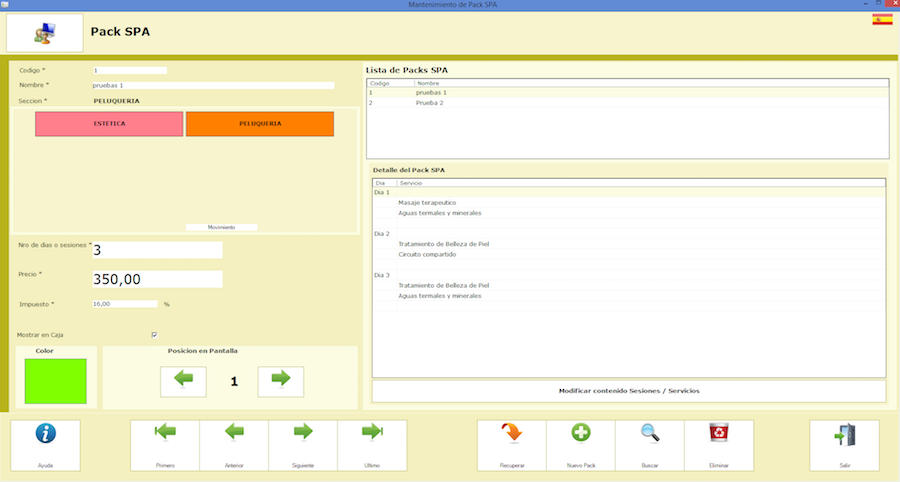 En un mismo pack incluye varios servicios unidos, diferenciados por día de uso, controlando aquellos tratamientos que están realizados y los que quedan pendientes.