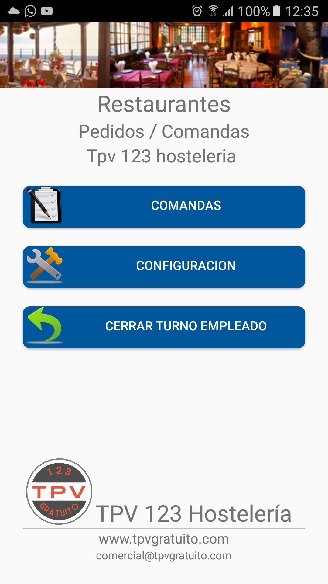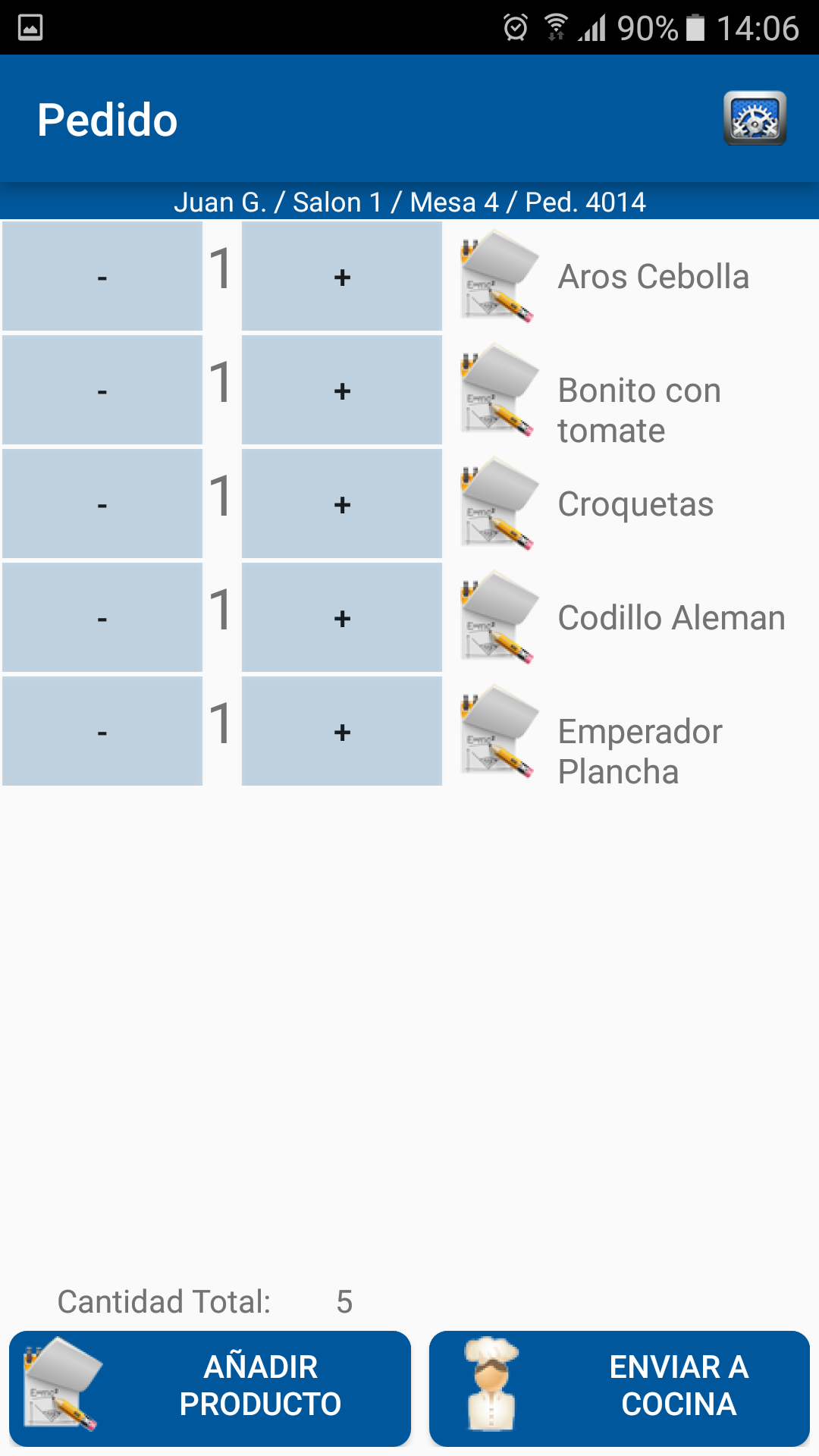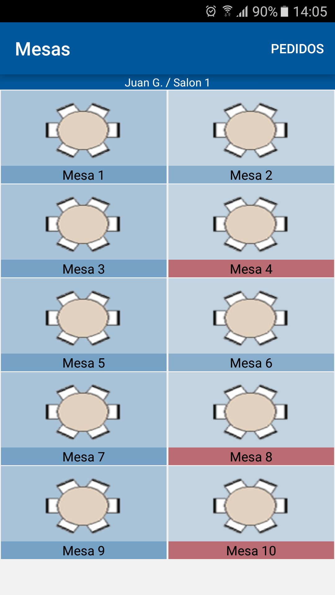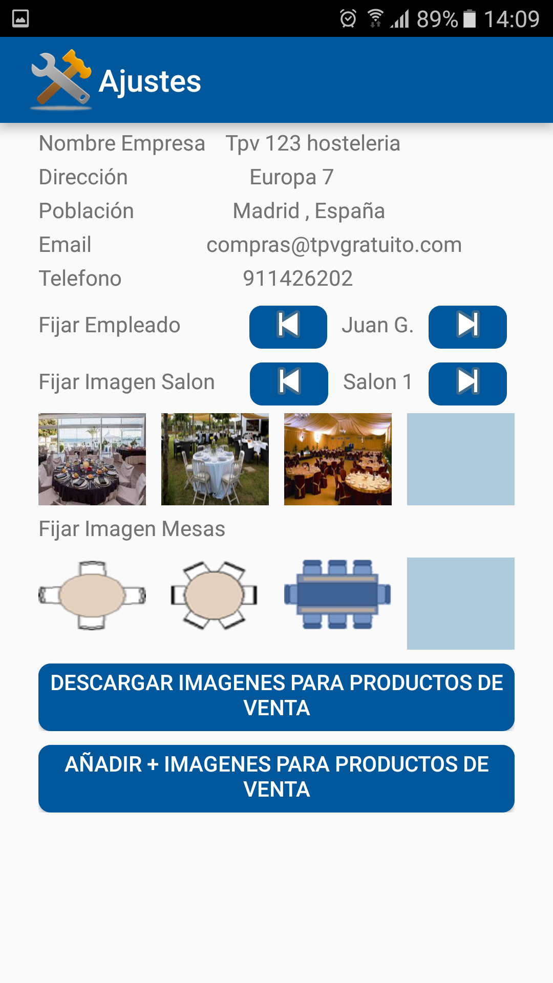 Podrá trabajar con varios salones y diferentes mesas. Configurar el programa con el nombre del camarero que lleva el comandero. Seleccione imágenes para cada salón, tipo de mesa y añada imágenes a sus productos de venta.