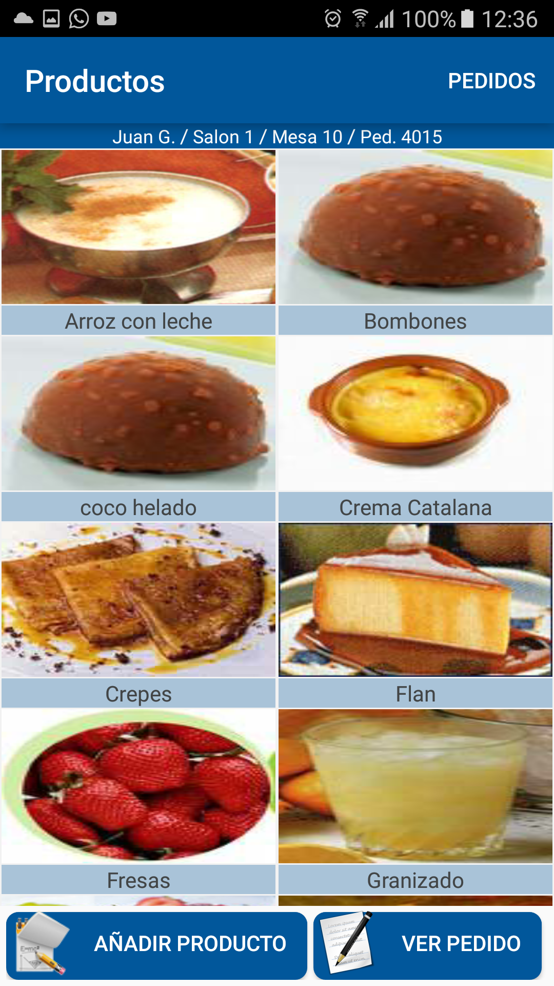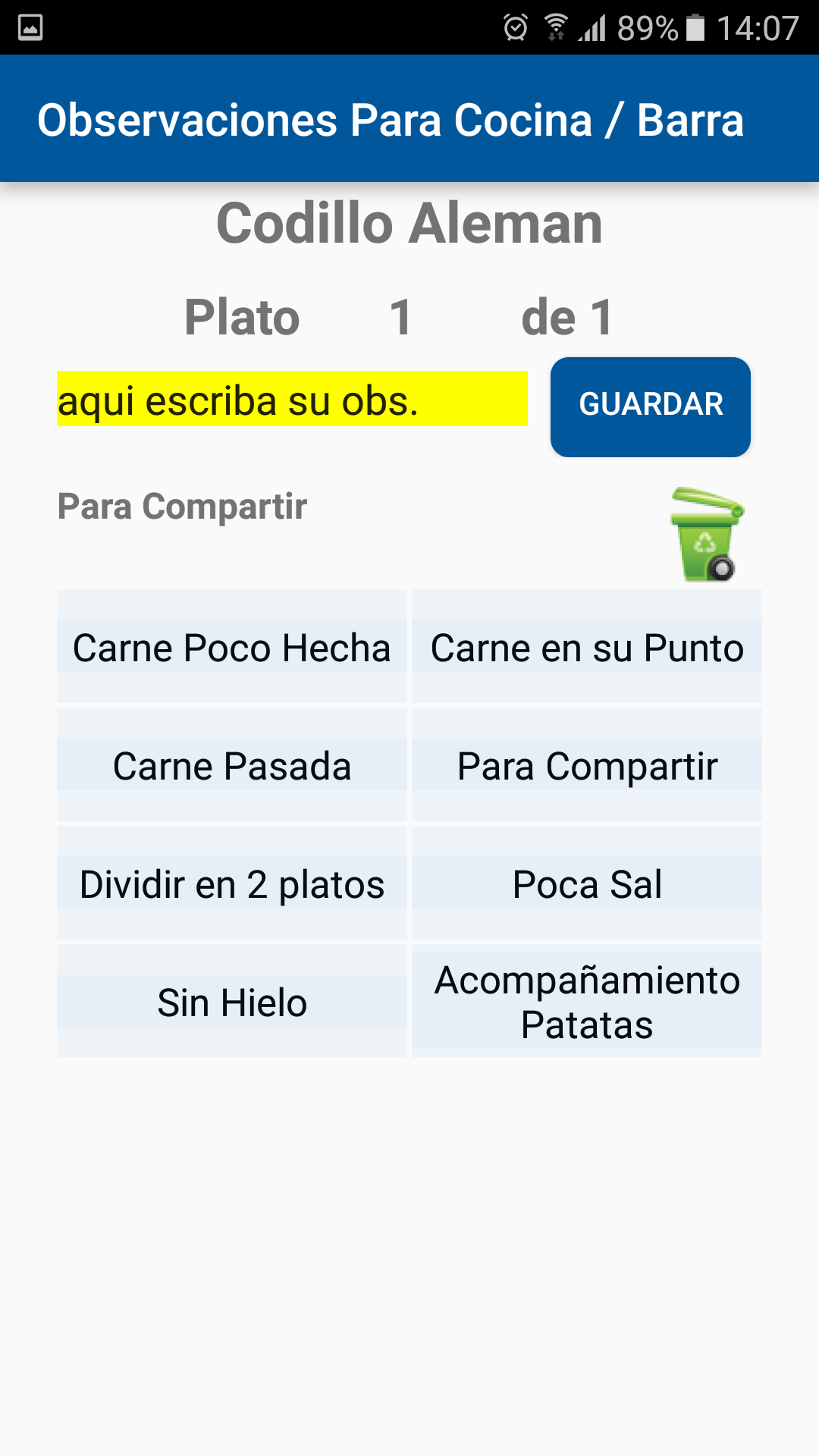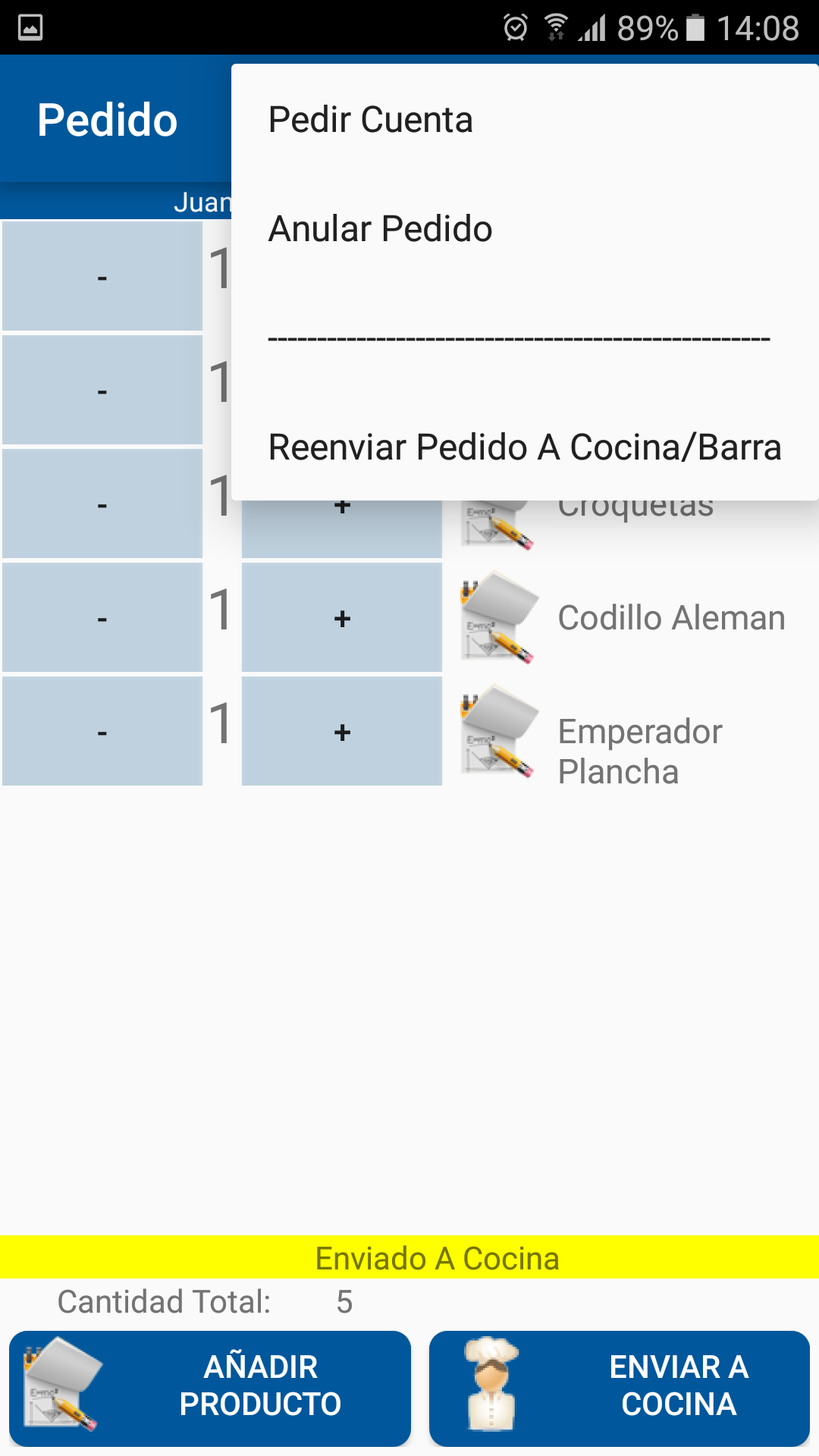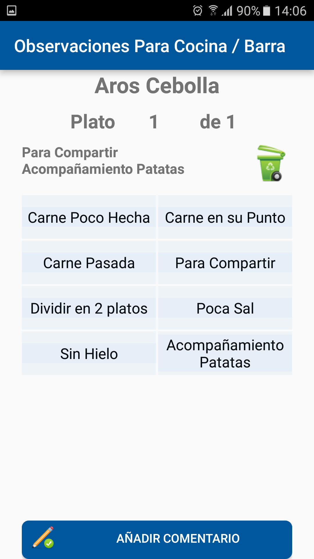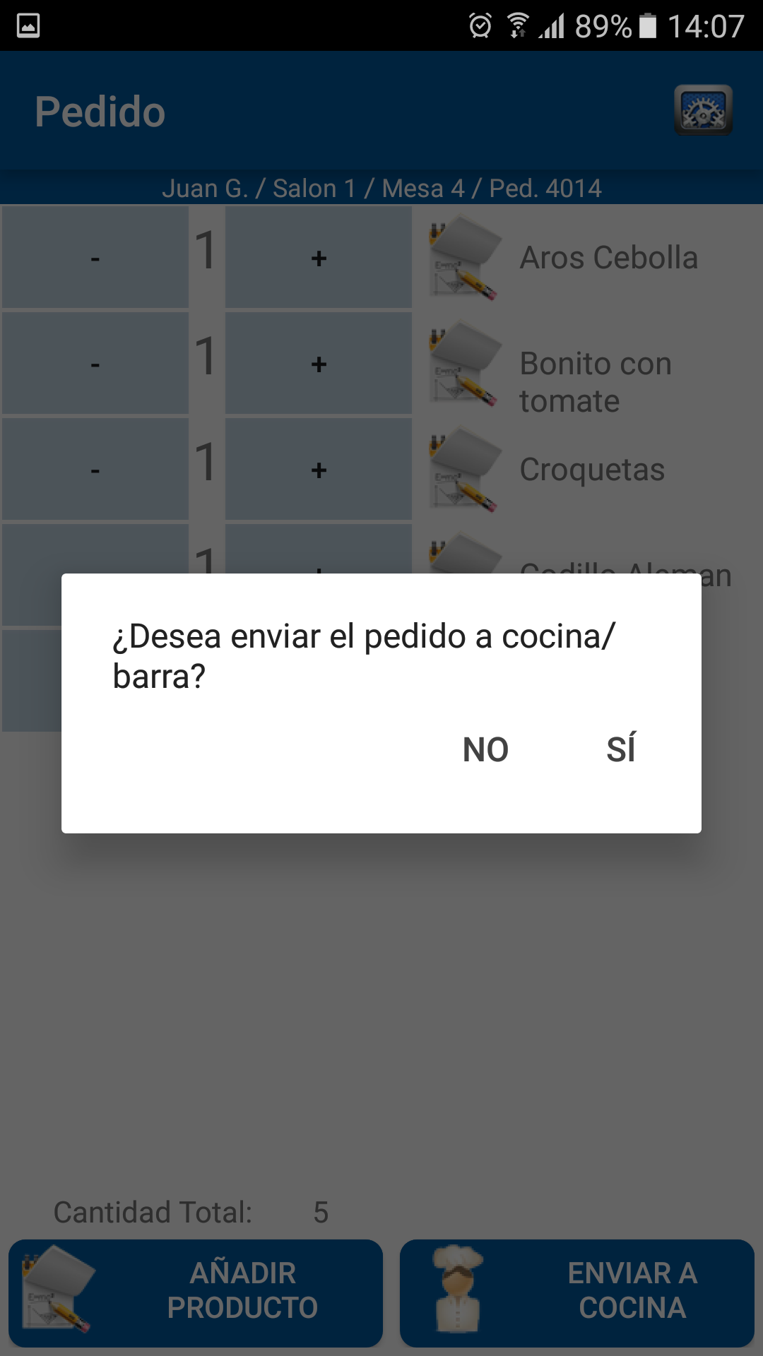 Una vez seleccionado el empleado el salón y la mesa podremos realizar la comanda de todos los productos que nos indique el cliente además de las observaciones de cada producto que queremos enviar a cocina.